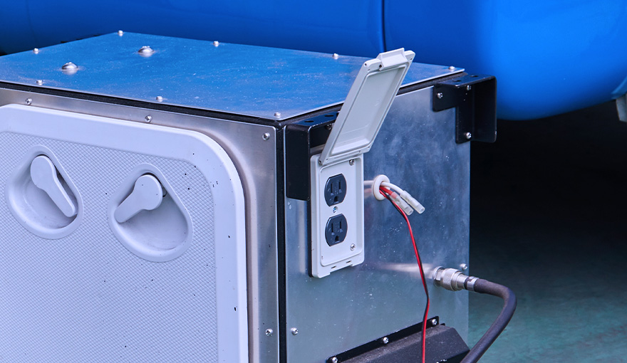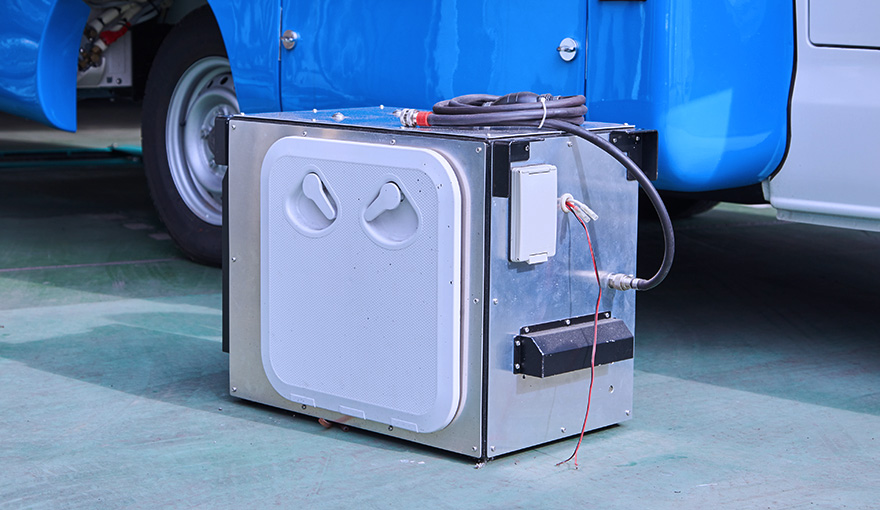 キャンピングカーでは冷蔵庫や電子レンジ、エアコンなどの電源を確保するために使用します。ソーラーパネルや外部電源が使えない時などに便利です。